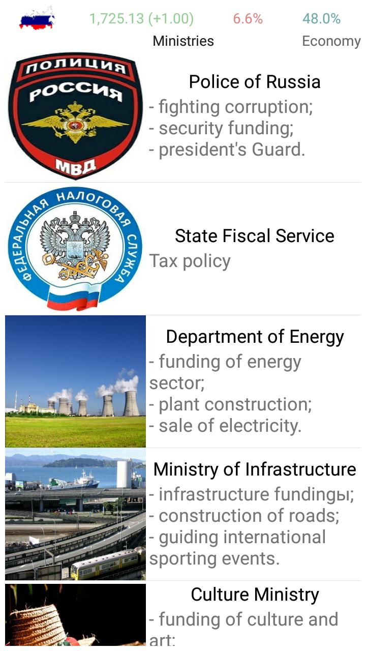 In the game you will have the ability to manage internal processes, to make war, to develop the economy.